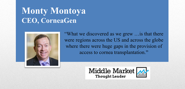 Join us when Monty Montoya recalls how an MBA degree and part-time job led him to secure a leadership role at a Seattle eye bank that would over time evolve into CorneaGen—a middle-market company that is generating more than $50 million annually in cornea transplant and related services.